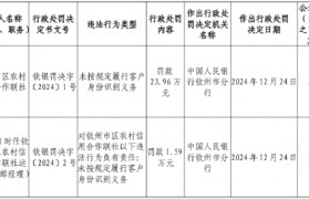钦州市区农村信用合作联社因未按规定履行客户身份识别义务被罚23.96万元