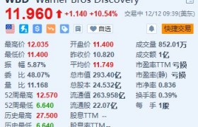 华纳兄弟探索公司(WBD.US 涨超10.5%,报11.96美元。消息面上,该公司宣布将实施新的公司...