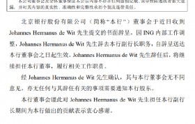 12月31日金融一线消息,北京银行今日发布公告,因ING内部工作调整,Johannes Herm...