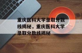 重庆医科大学录取分数线揭秘,该分数线根据不同省份、不同专业和不同年份有所差异。该校录取分数线较高,需...