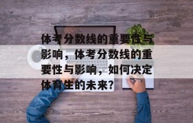 体考分数线的重要性与影响体现在多个方面。它决定了学生是否能够进入心仪的体育院校或专业,对个人未来的学...