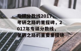 2017年专硕分数线成为考研之路的重要里程碑,标志着研究生招生考试的改革与进步。这一年,各高校对专硕...