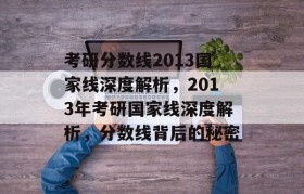 本文深度解析了2013年考研国家线的分数线情况。通过对各科目、各地区的分数线进行详细分析,揭示了不同...