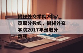 揭秘外交学院2017录取分数线,揭秘外交学院2017年录取分数线