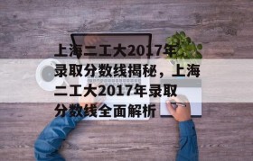上海二工大2017年录取分数线揭秘,上海二工大2017年录取分数线全面解析