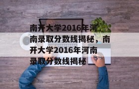 南开大学2016年在河南的录取分数线揭秘,具体分数线因专业和文理科不同而有所差异。南开大学对河南考生...