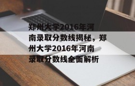 郑州大学2016年河南录取分数线揭秘,郑州大学2016年河南录取分数线全面解析