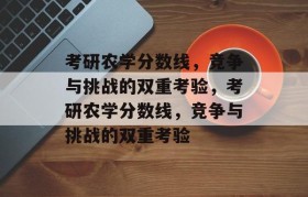 考研农学分数线是考生们面临的重要参考,反映了竞争与挑战的双重考验。在激烈的竞争中,考生们需要付出更多...