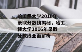 哈工程大学2016年录取分数线揭秘,哈工程大学2016年录取分数线全面解析