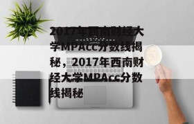 2017年西南财经大学MPAcc分数线揭秘,该年度分数线根据考生报考专业和地区不同有所差异。对于全国...