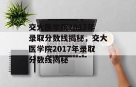 交大医学院2017年录取分数线揭秘,该年录取分数线因专业、省份、批次等因素而异。医学类专业的录取分数...