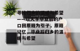 寻找归乡的温暖与希望——以大学毕业后的户口回原籍为引子,原籍记忆,毕业后归乡的温暖与希望