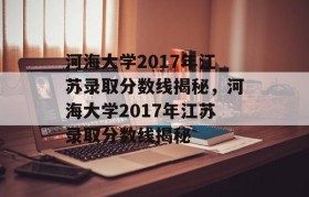 河海大学2017年江苏录取分数线揭秘,河海大学2017年江苏录取分数线揭秘