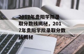 2017年贵阳学院录取分数线揭秘,该学院各专业录取分数线因省份、科类、批次等因素而异。该校录取分数线...