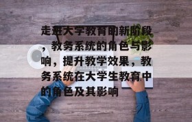 走进大学教育的新阶段,教务系统的角色与影响,提升教学效果,教务系统在大学生教育中的角色及其影响