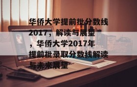 华侨大学2017年提前批分数线公布,该分数线反映了学校对优秀学生的选拔标准。本文将对该分数线进行解读...