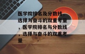 选择医学院及考虑其排名和分数线是双重考量的问题,既涉及到学术水平又涉及到未来职业发展的可能性。医学院...