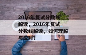 2016年复试分数线解读:该年度的复试分数线是众多考生关注的焦点,各高校根据不同专业和招生计划设定了...