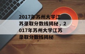 2017年苏州大学江苏录取分数线揭秘,2017年苏州大学江苏录取分数线揭秘