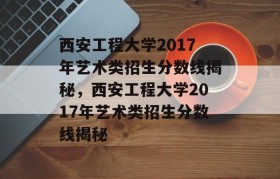 西安工程大学2017年艺术类招生分数线揭秘:该校艺术类招生分数线因专业而异,其中美术学、设计学、音乐...