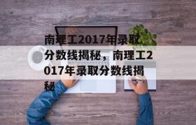 2017年南京理工大学录取分数线揭秘,2017年南京理工大学录取分数线揭秘
