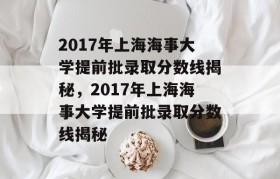 2017年上海海事大学提前批录取分数线揭秘,该年提前批录取分数线因专业、省份、文理科等因素而异。该校...