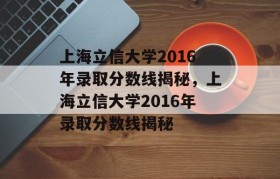 上海立信大学2016年录取分数线揭秘,该年度录取分数线因专业、省份、文理科等因素而异。该校的录取分数...