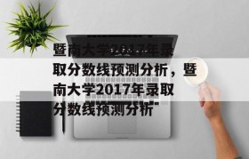 暨南大学2017年录取分数线预测分析显示,根据历年录取情况及高考难度变化趋势,预计该校2017年录取...