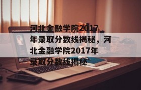 河北金融学院2017年录取分数线揭秘,该学院各专业录取分数线因地区、科类、文理科等因素而异。本科一批...