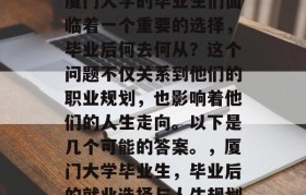 厦门大学的毕业生们面临着一个重要的选择,毕业后何去何从?这个问题不仅关系到他们的职业规划,也影响着他们的人生走向。以下是几个可能的答案。,厦门大学毕业生,毕业后的就业选择与人生规划