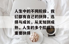 人生中的不同阶段,我们都有自己的抉择,选择与成长,从无知到成熟,人生的多个阶段与重要抉择