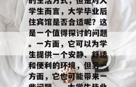 大学毕业之后住宾馆,这听起来是一种很独特的生活方式,但是对大学生而言,大学毕业后住宾馆是否合适呢?这是一个值得探讨的问题。一方面,它可以为学生提供一个安静、舒适和便利的环境,但另一方面,它也可能带来一些问题。,大学生毕业后的住宿选择,适合还是不适合?