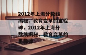 2012年上海分数线揭秘,标志着教育变革的里程碑。这一年,上海高考分数线公布,吸引了众多考生和家长的...