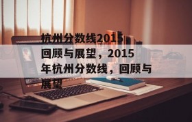 杭州2015年分数线回顾与展望,反映了当年高考、中考等各类考试的录取情况。这一年,杭州的分数线有所波...