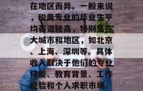 税务大学毕业后工资是多少?,税务大学毕业后的薪水会因专业和所在地区而异。一般来说,税务专业的毕业生平均薪资较高,特别是在大城市和地区,如北京、上海、深圳等。具体收入取决于他们的专业技能、教育背景、工作经验和个人求职市场。你可以查阅相关职业报告或就业市场数据来获取更准确的信息。