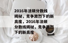 2016年法硕分数线揭秘,竞争愈发激烈,分数线达到新高度。这一年,众多考生为了追求法律专业硕士的梦想...