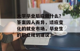 在当今社会中,越来越多的人选择了进入大学深造,学习专业知识和技能,大学毕业生毕业后到底应该做什么呢?...