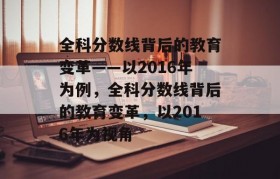 摘要:,,2016年全科分数线背后的教育变革,旨在推动教育公平和提高教育质量。该变革涉及了考试制度、...
