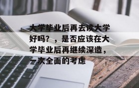 这是一个充满争议的话题,对于很多人来说,大学毕业后再去读大学,或者称为“深造”,是一个不错的选择,也...