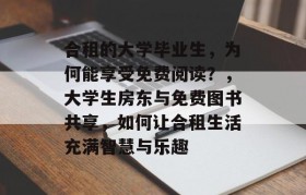 在快节奏的社会中,越来越多的人选择和朋友、家人一起居住,而在许多人的眼中,合租不仅仅是一个住宿方式的...