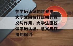 在学历认证的世界里,大学生回校打证明的意义与作用,大学生回校做学历认证,意义与作用的探讨