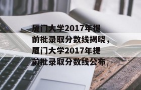 厦门大学2017年提前批录取分数线已经揭晓,该分数线是根据考生的高考成绩、综合素质等多方面因素综合评...
