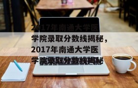 2017年南通大学医学院录取分数线揭秘,具体分数线因专业、省份、批次等因素而异。医学院的录取分数线相...
