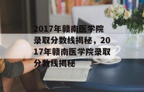 2017年赣南医学院录取分数线揭秘,该年录取分数线因专业、省份、批次等因素而异。临床医学等热门专业录...