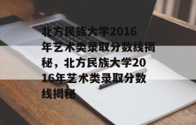 北方民族大学2016年艺术类录取分数线揭秘,具体分数线因专业不同而有所差异。该校注重学生综合素质和艺...
