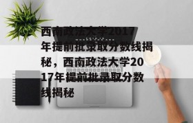西南政法大学2017年提前批录取分数线揭秘,各省份录取分数线有所不同,但总体上,文科一本线普遍较高,...