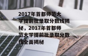 2017年首都师范大学提前批录取分数线揭秘,该年各省份录取分数线因专业、文理科等因素而异。文史类专业...