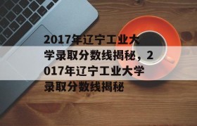 2017年辽宁工业大学录取分数线揭秘,2017年辽宁工业大学录取分数线揭秘