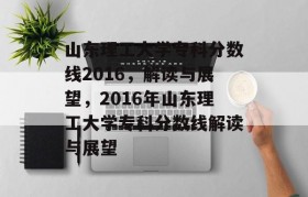 山东理工大学专科分数线2016年,是众多考生关注的焦点。该年度的分数线反映了学校对招生标准的严格把控...