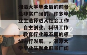 湘潭大学毕业后的前景是非常广阔的。许多毕业生选择进入社会工作、自主创业、科研工作、教育行业等不同的领域进行发展。,湘潭大学毕业生就业前景广阔